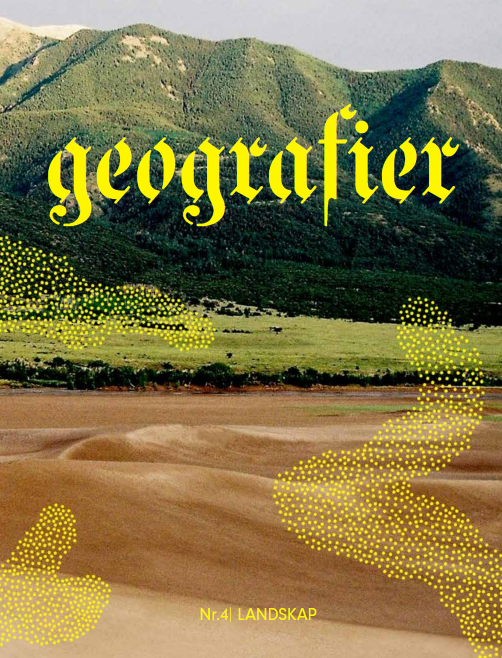 Parker och andra grönområden utformas efter tidens ideal men det gör också storskaliga landskap. På sidan 32 har Nicole Reid och Oleksandr Holovachov illustrerat begreppet ekosystemtjänster med hjälp av osynligt ljus. Det är ett sätt att sätta ekonomiskt värde på landskapets resurser. För vari består naturens värde? Det är lockande att föreställa sig ett landskap utan människor, en fri vildmark. Men vildmark är ett mänskligt påfund. Som Anders Sjöstrand skriver i essän Portraits of a Peopleless world är den människofria naturen en destruktiv fantasi som tar fokus från den verkliga frågan, nämligen den om jordens kollapsande ekosystem. Gracie Verda Selva tar oss med till Atlantskogen, Amazonas lillasyrra som sträcker sig utmed Paraguays, Argentinas och Brasiliens västra kust, där intressen kolliderar och människor sätts på flykt. Också hos Sandra Ylikangas sidan 50 och Jenny Nordmark på sidan 14 står konflikterande resursintressen i centrum: bruk eller missbruk av vatten, mincral och mark. Poeten Cody Koester inleder numret. Och det kommer mer! För en riktigt geografisk analys av Georgiens jordbruk, slå upp sidan 64 och läs Lars Ährbergs och Robert Salmijärvis reportage om det sovjetiska arvet eller sidan 22 där Miron Arljung berättar om Costa Ricas kaffelandskap; den ekonomiska globaliseringen har ju inte kunnat frångå det faktum att en produkt måste komma någonstans ifrån. Vi visar Sofia Runarsdotters och Joakim Hanssons projekt the Other från bosniska Mostar, fotografier från både Sandra Leandersson och Malin Bernalt samt Karin Hagens suggestiva illustration.